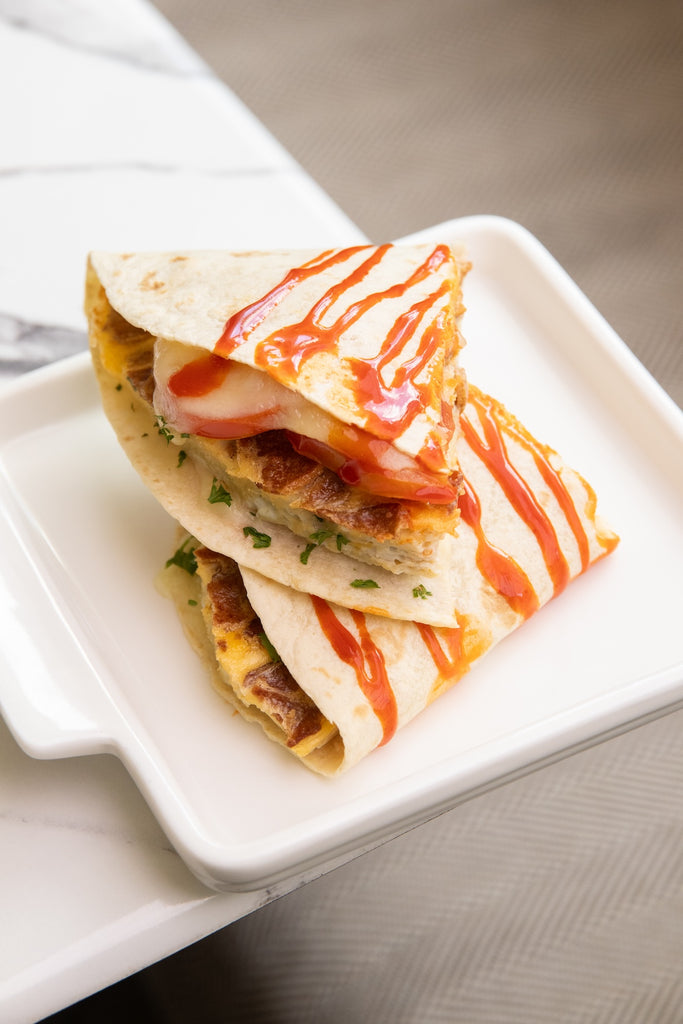 Tortilla Keto, Huevo, Tocineta de Pavo, Mozzarella & Tomates + Side de Sriracha